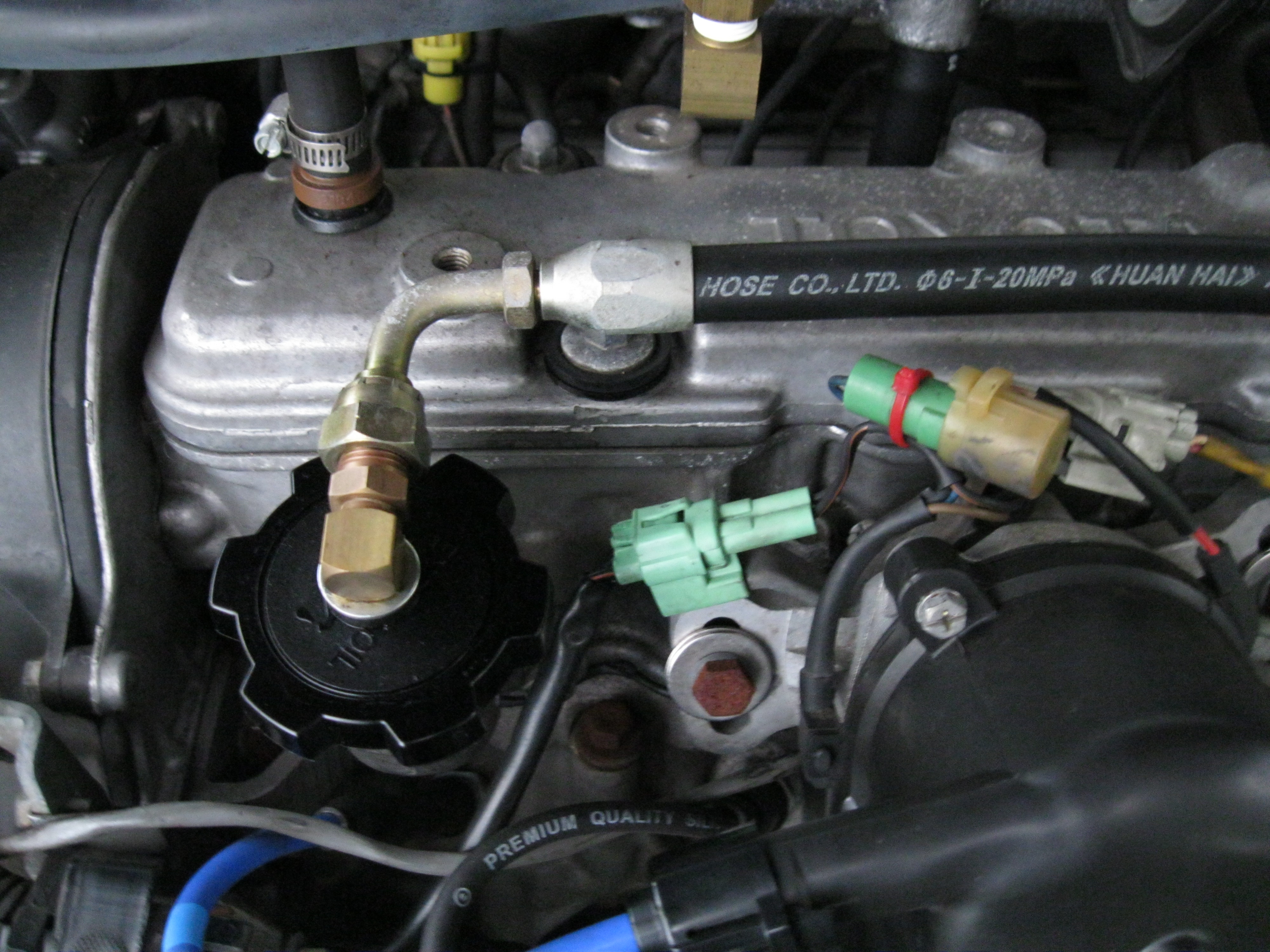 Jackmaster Bypass Engine Oil Installation - Toyota Camry 1986 SV11 - Oil Pressure Switch Inlet - Outlet Hose - Side